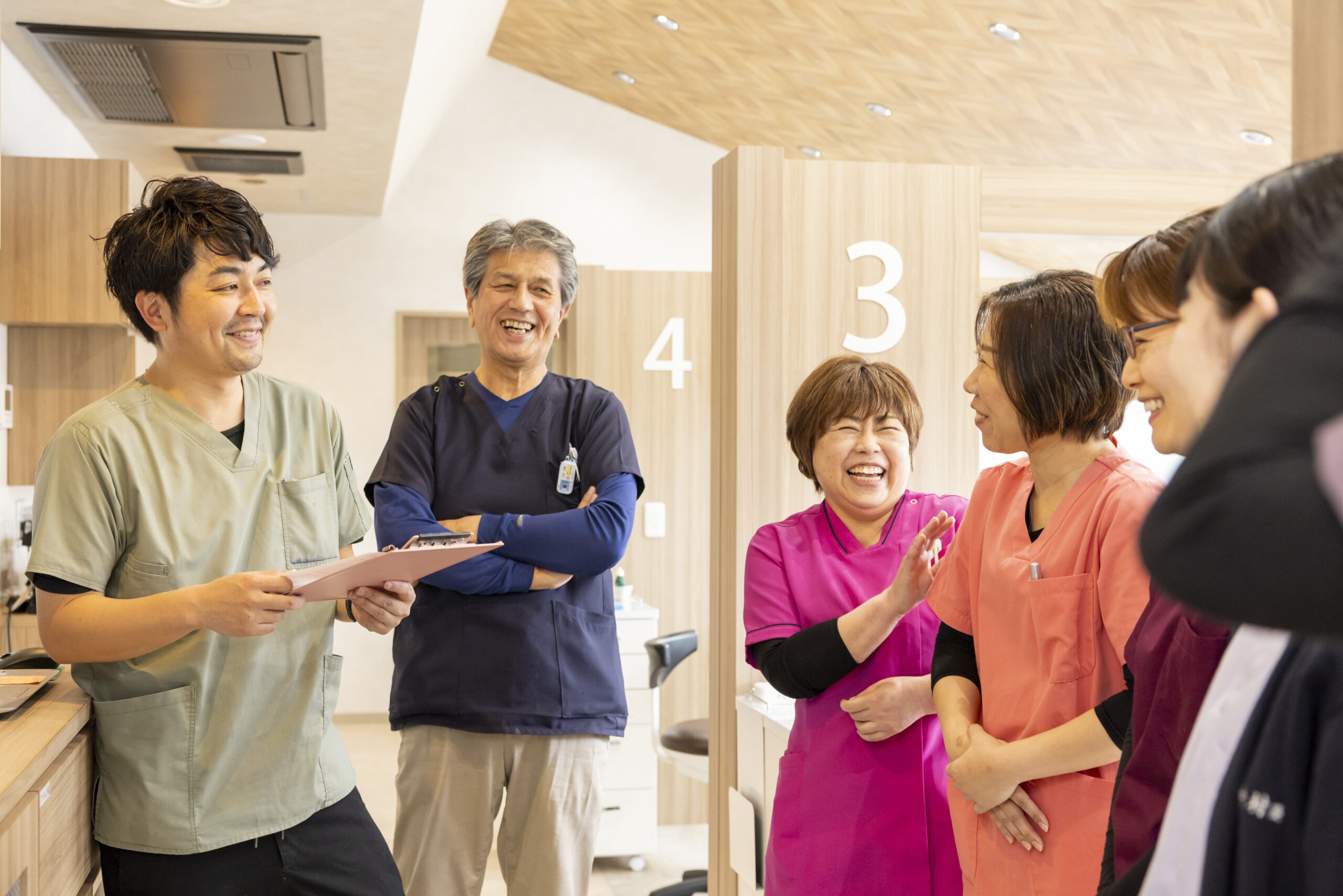 勤続10年以上のスタッフも在籍しており、スタッフ全員が笑顔で働ける「定着率の高い歯科医院」として地域の皆さまに親しまれています。